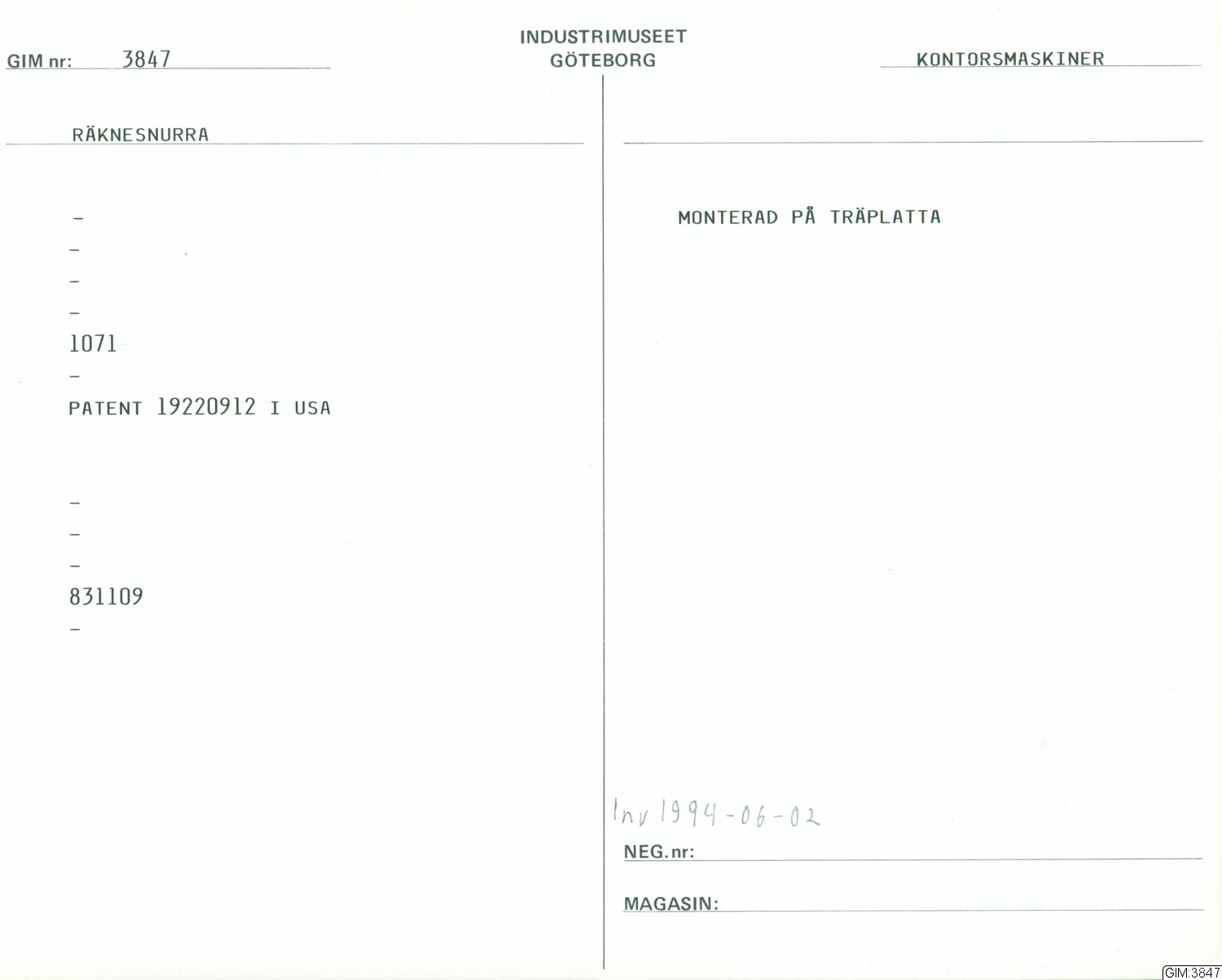 GIM katalogkort Kontor 1: Kontorsmaskiner 1