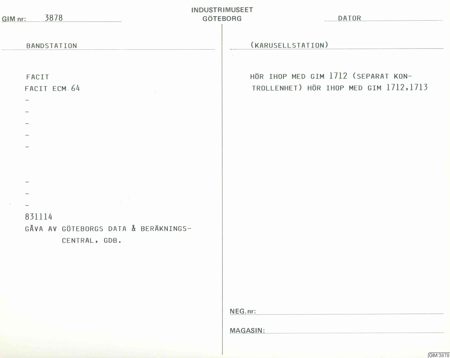 - Karusellstation-data, hör ihop med GIM 1712. Separat kontrollenhet. Hör ihop med GIM 1712,1713