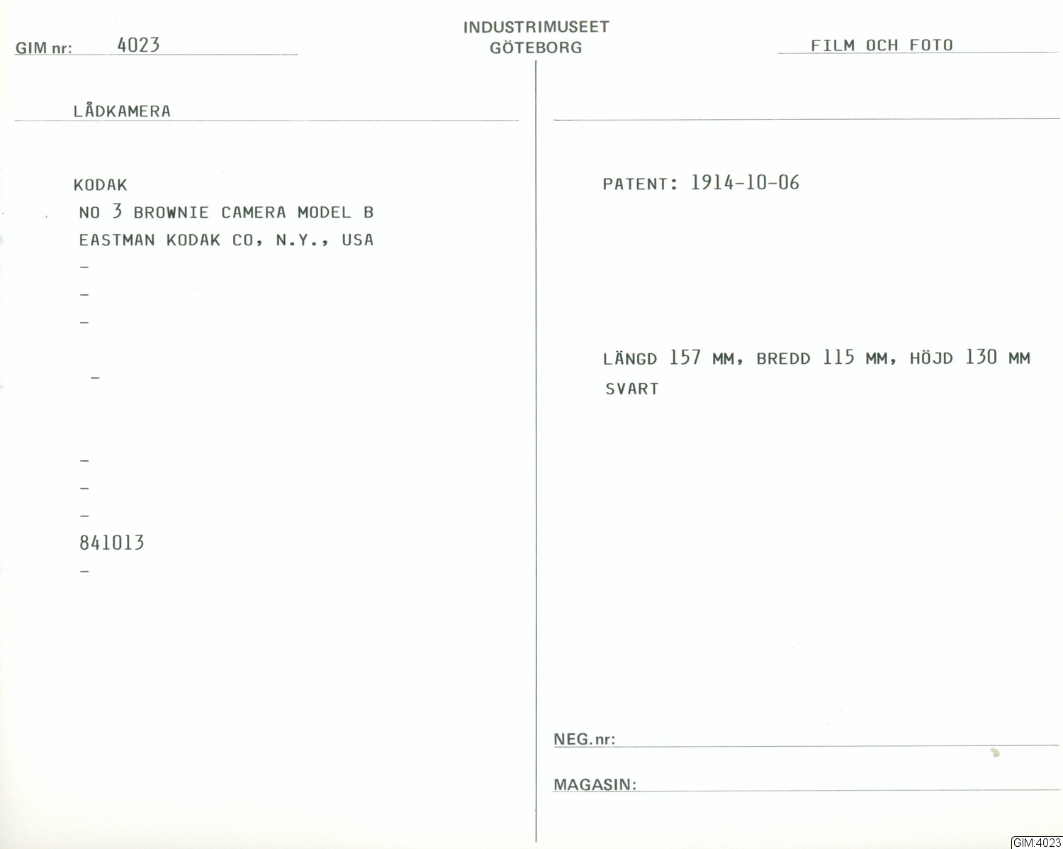 GIM katalogkort Film och foto 1