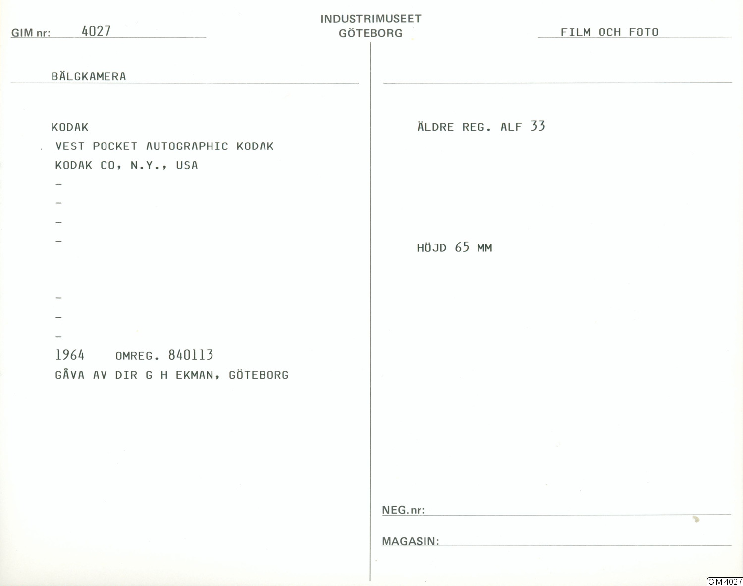 GIM katalogkort Film och foto 1