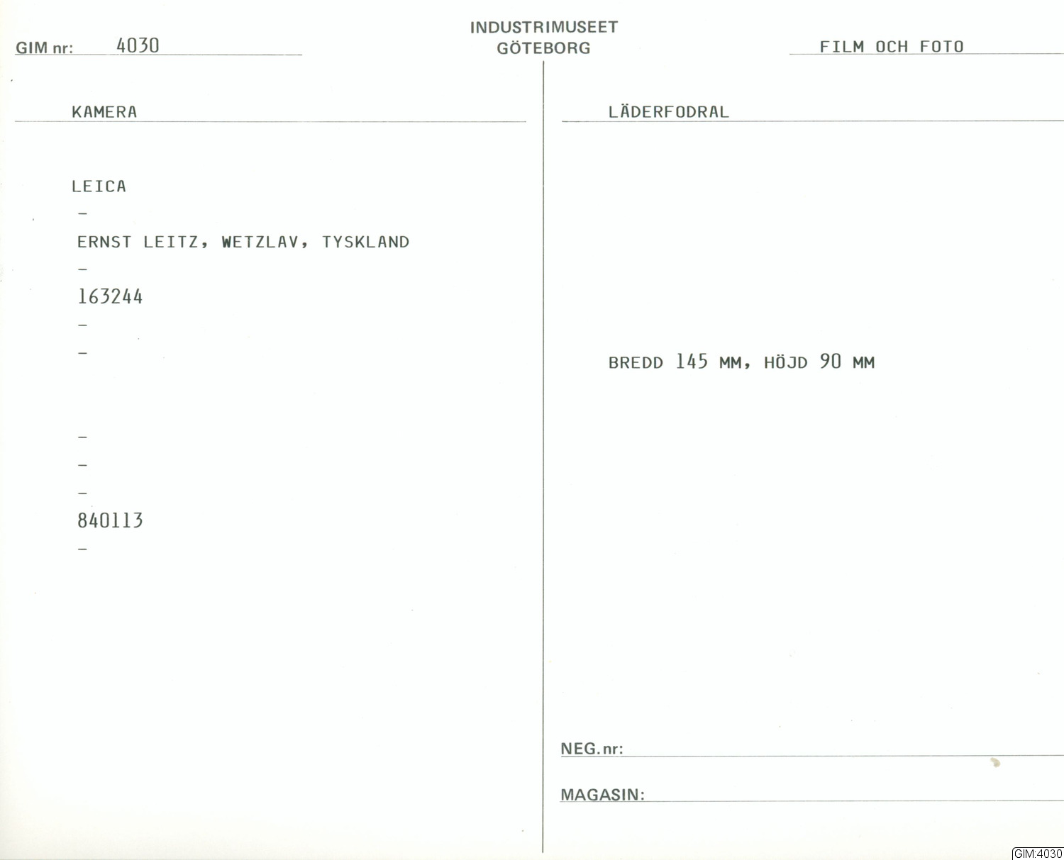 GIM katalogkort Film och foto 1