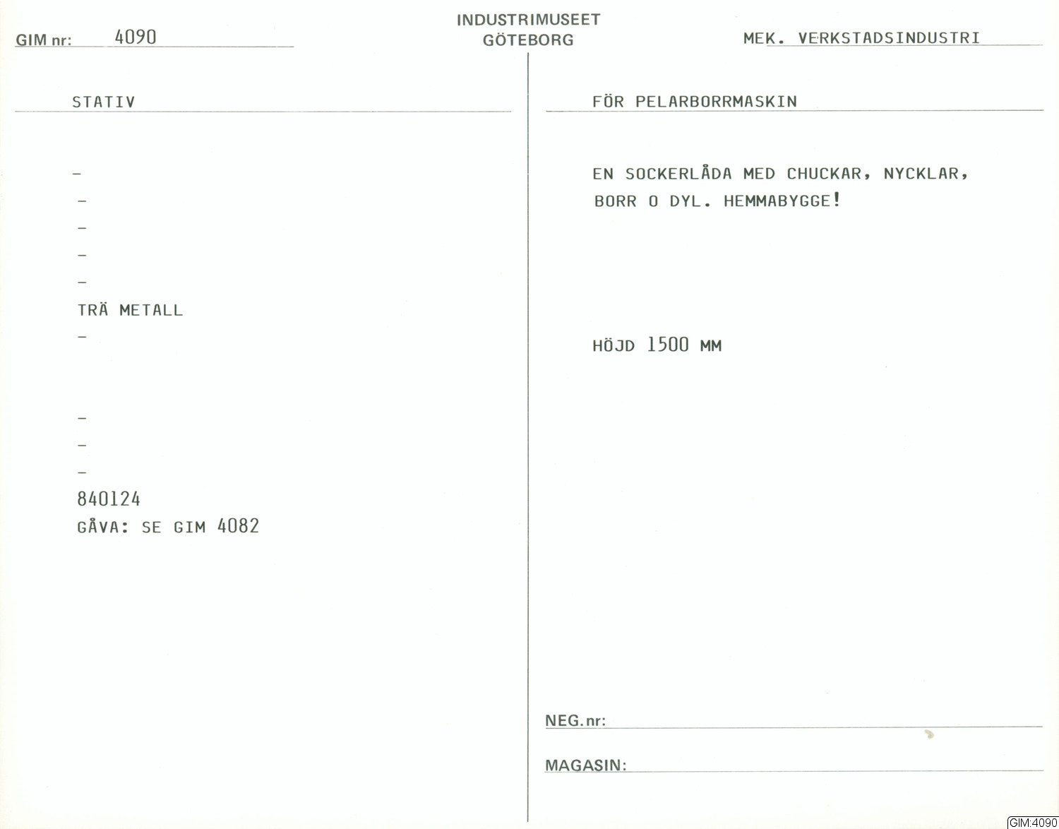GIM:4090 :: pelarborrmaskin, redskap och verktyg