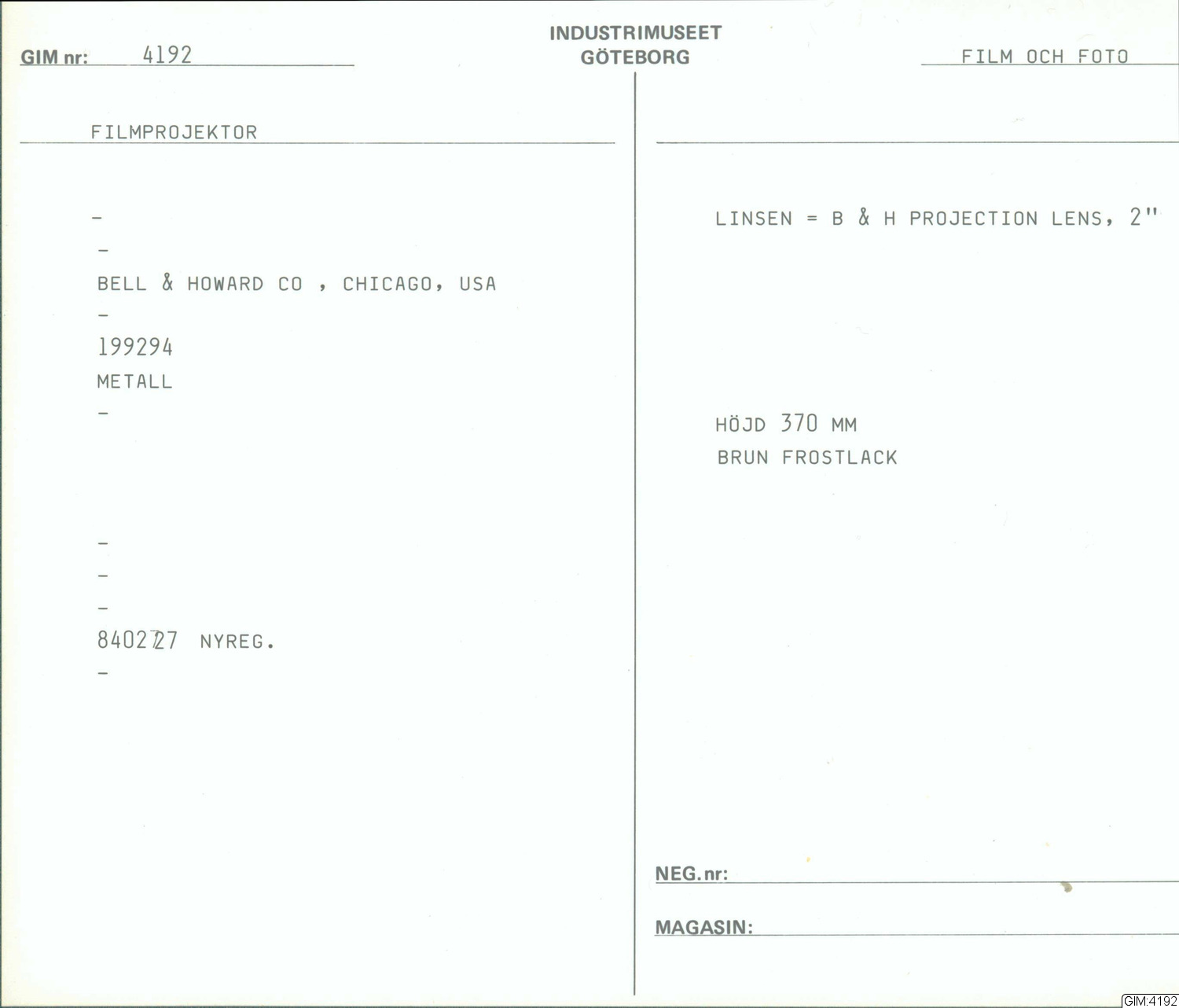 Brunfärgad "rynklackerad". Linsen=B & H Projection lens, 2