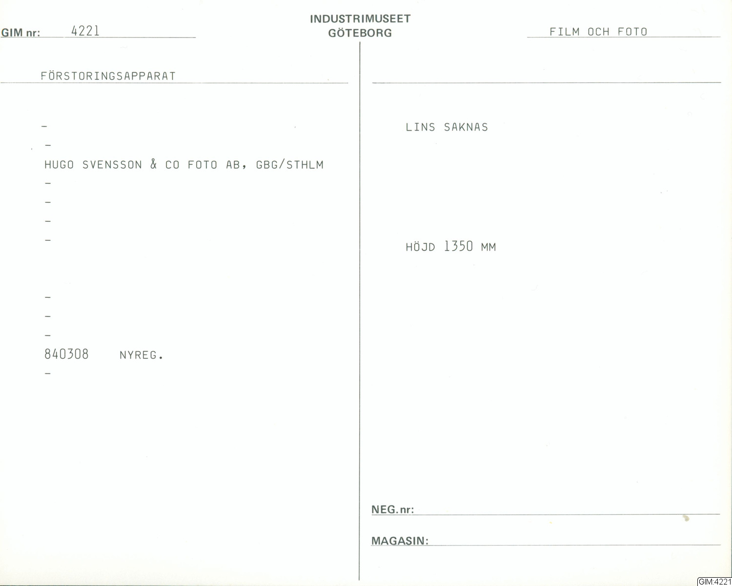 GIM:4221 :: förstoringsapparat, film, foto
