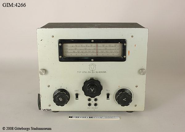 - Militärmottagare. Lättmetallkapslat chassi, militärgrå. Stationsfönster i plast , bakelitreglage, gummi- fötter. Rörbestyckad. LV, MV och KV. Färgstänk. Med vidhängande anslutningssladd.