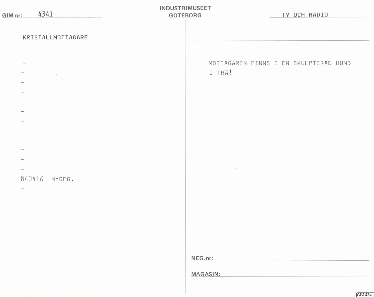 GIM katalogkort Television