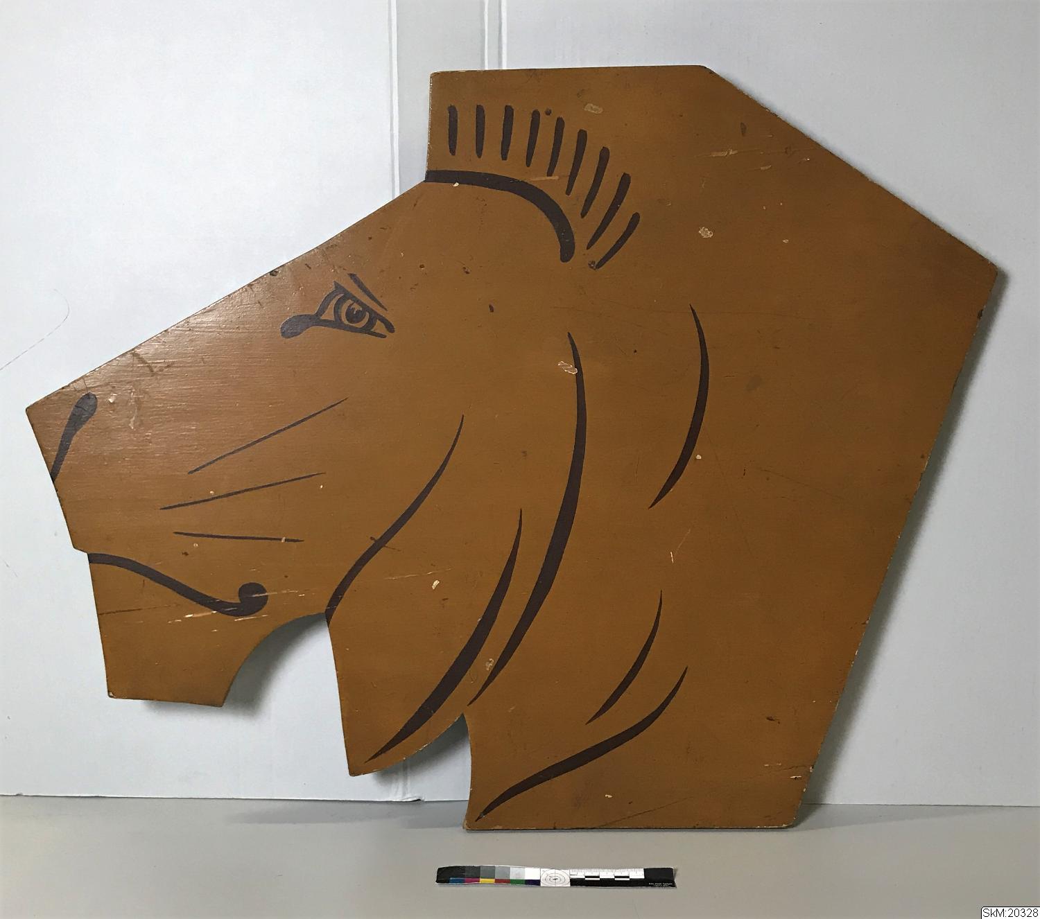 djurfigur, bemålat trä, Lejon, Utförd år 1918.