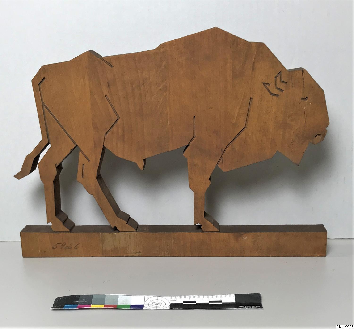 bison, i maskinutsägat trä, av A. Knöppel år 1934.