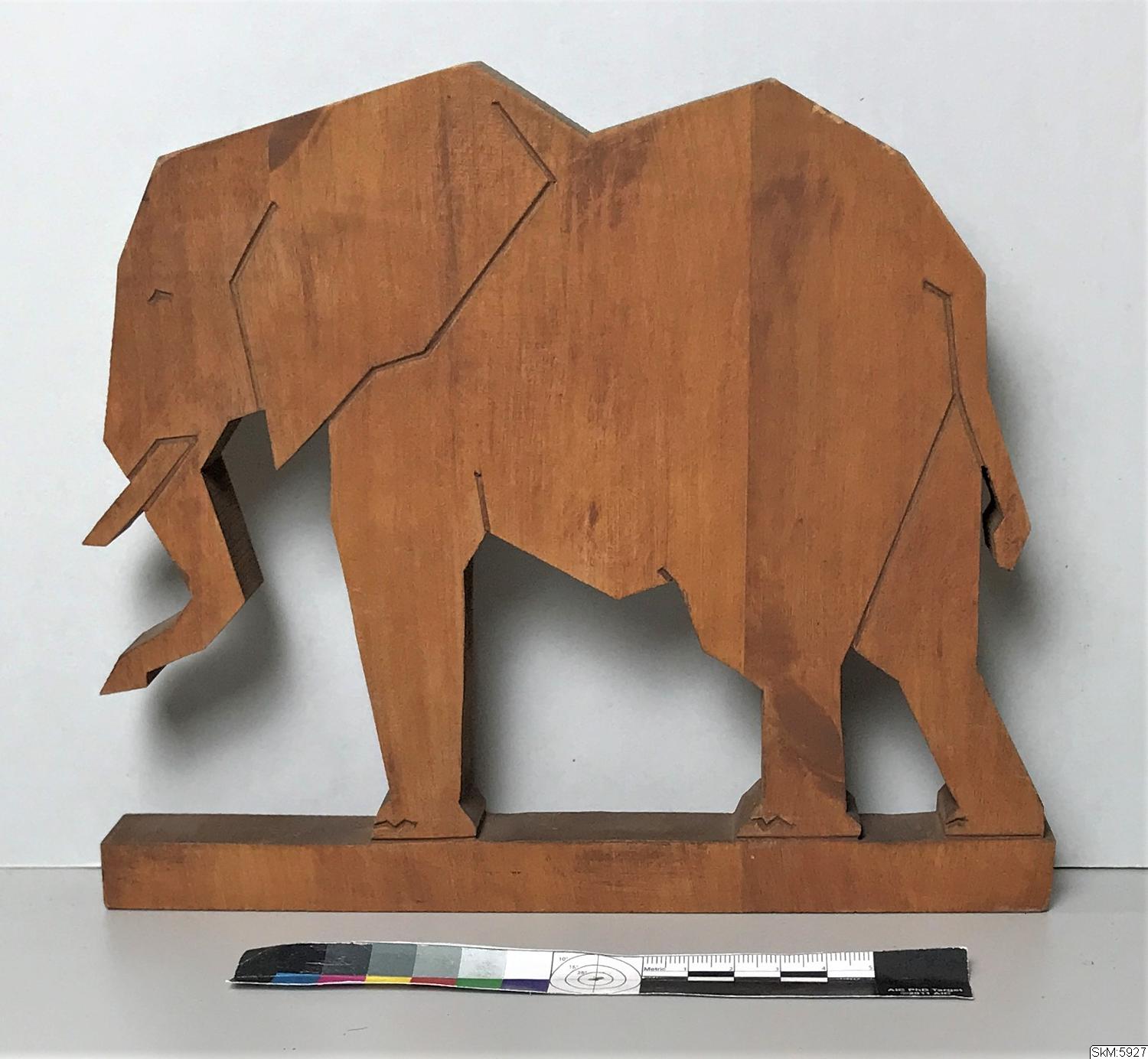elefant, av maskinutsågat trä, av A. Knöppel år 1934.