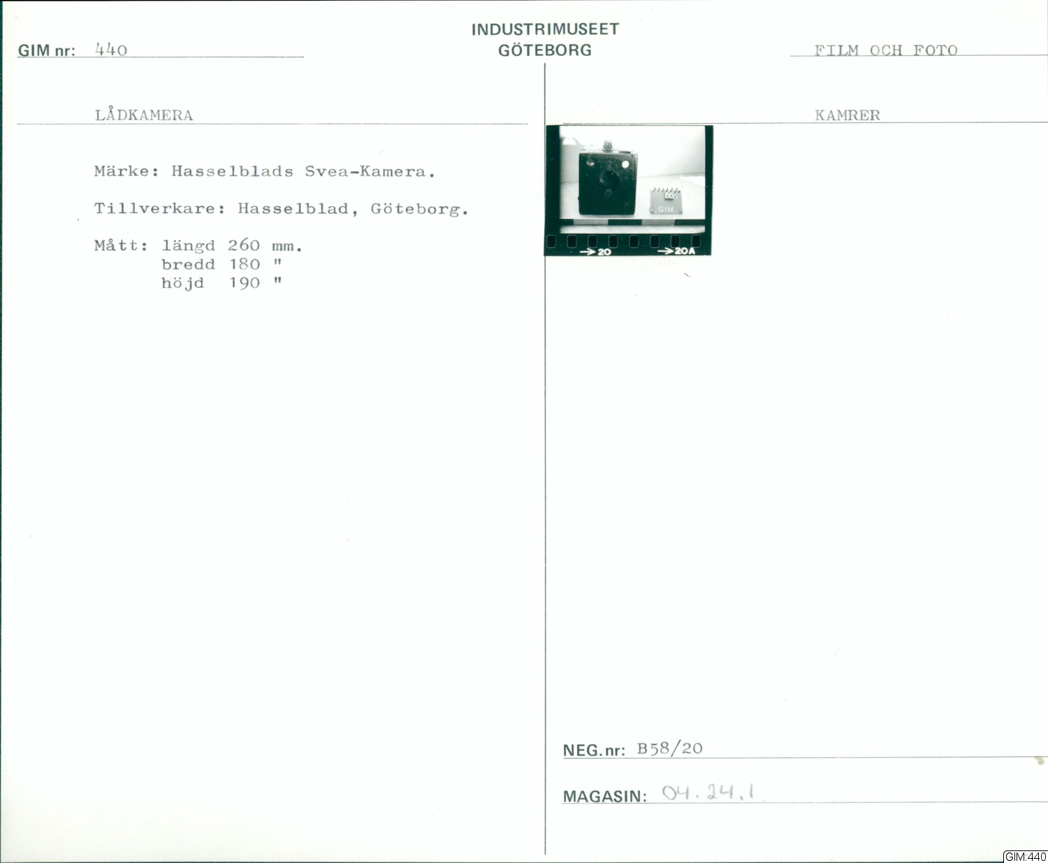 GIM katalogkort Film och foto 1