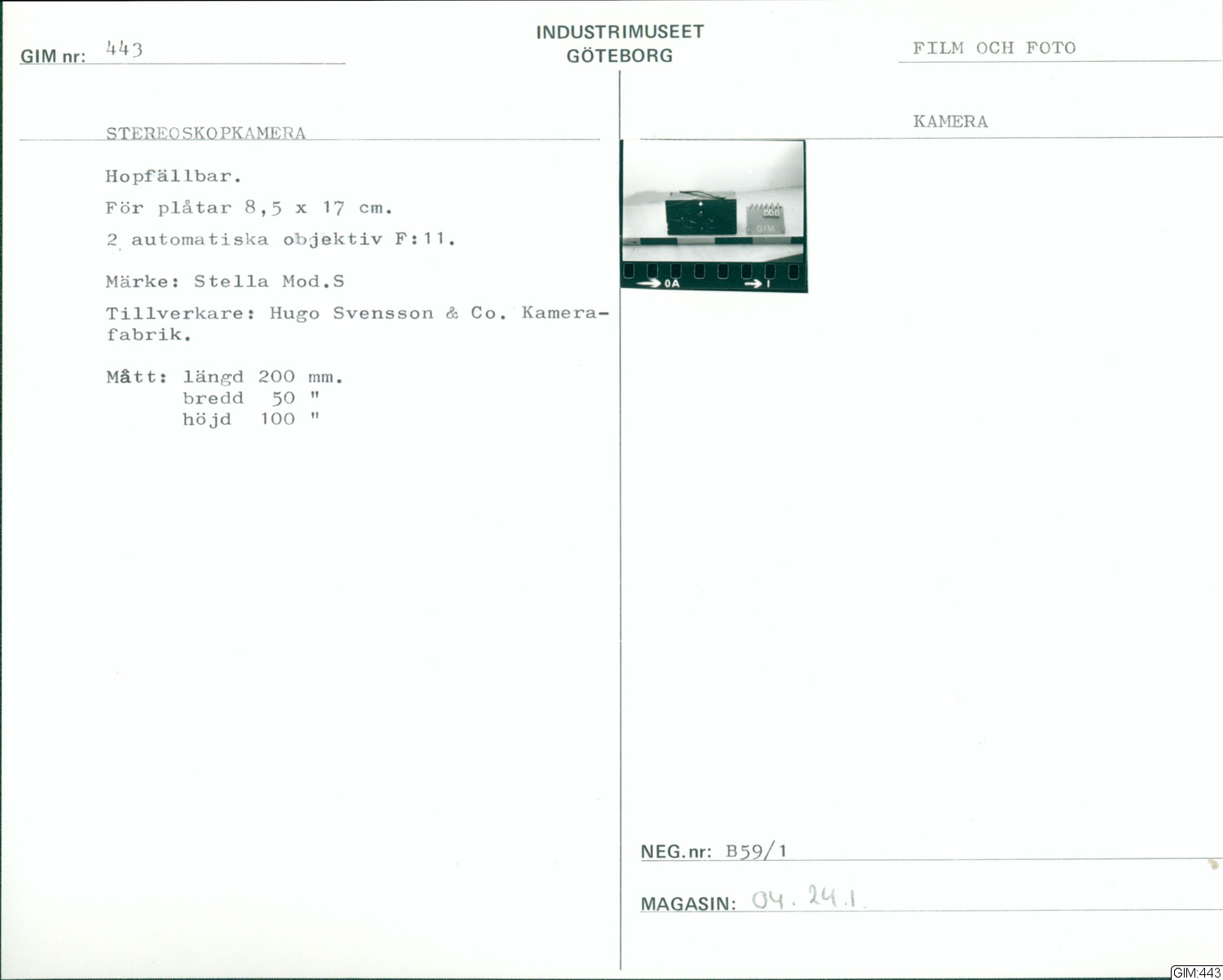 GIM katalogkort Film och foto 1