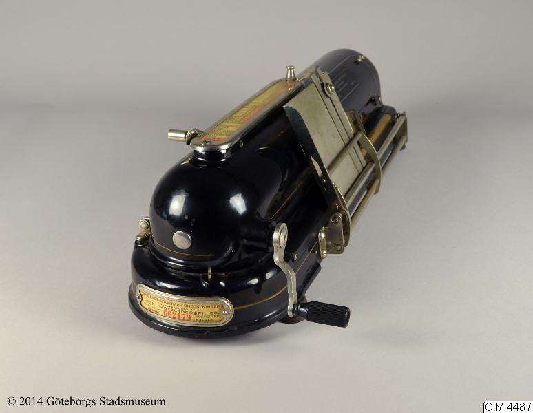 Checkstämplingsmaskin tillverkad av Todd Protectograph Co. Gåva till Industrimuseet 1984.