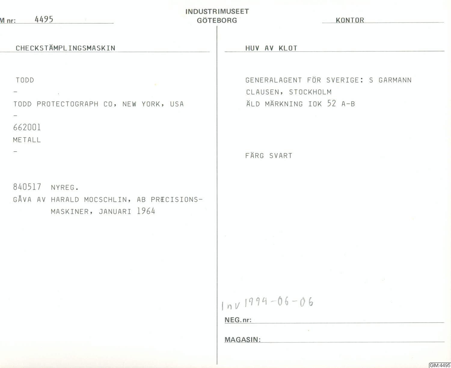 - Generalagent för Sverige : S. Garmann Clausen Stockholm. Färg Svart.