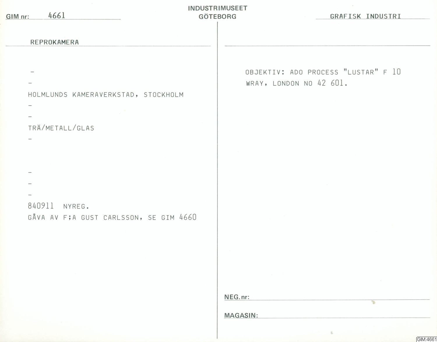 GIM:4661 :: reprokamera