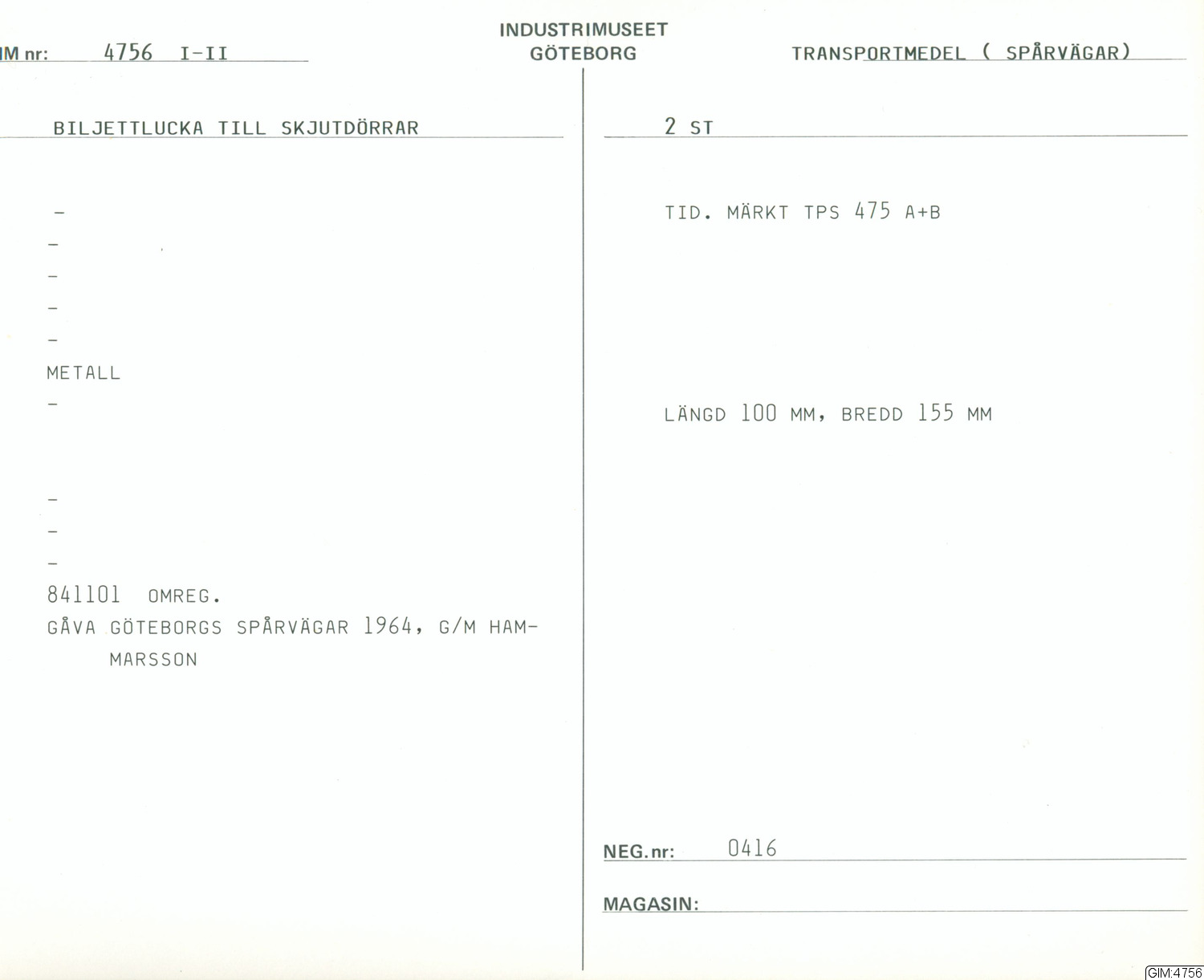 GIM katalogkort Transportmedel: Spårvägar 2