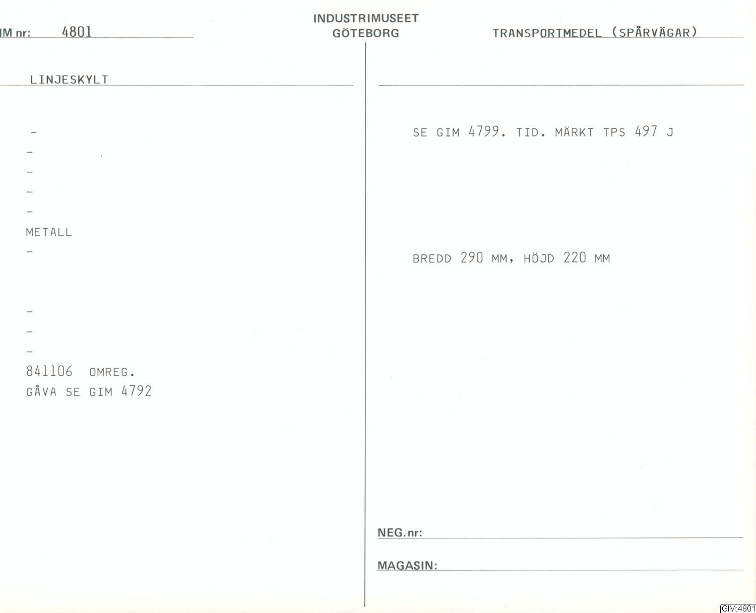 Gåva från Göteborgs Spårvägar genom Herr Hammarsson.; Se GIM:4792 för mer information