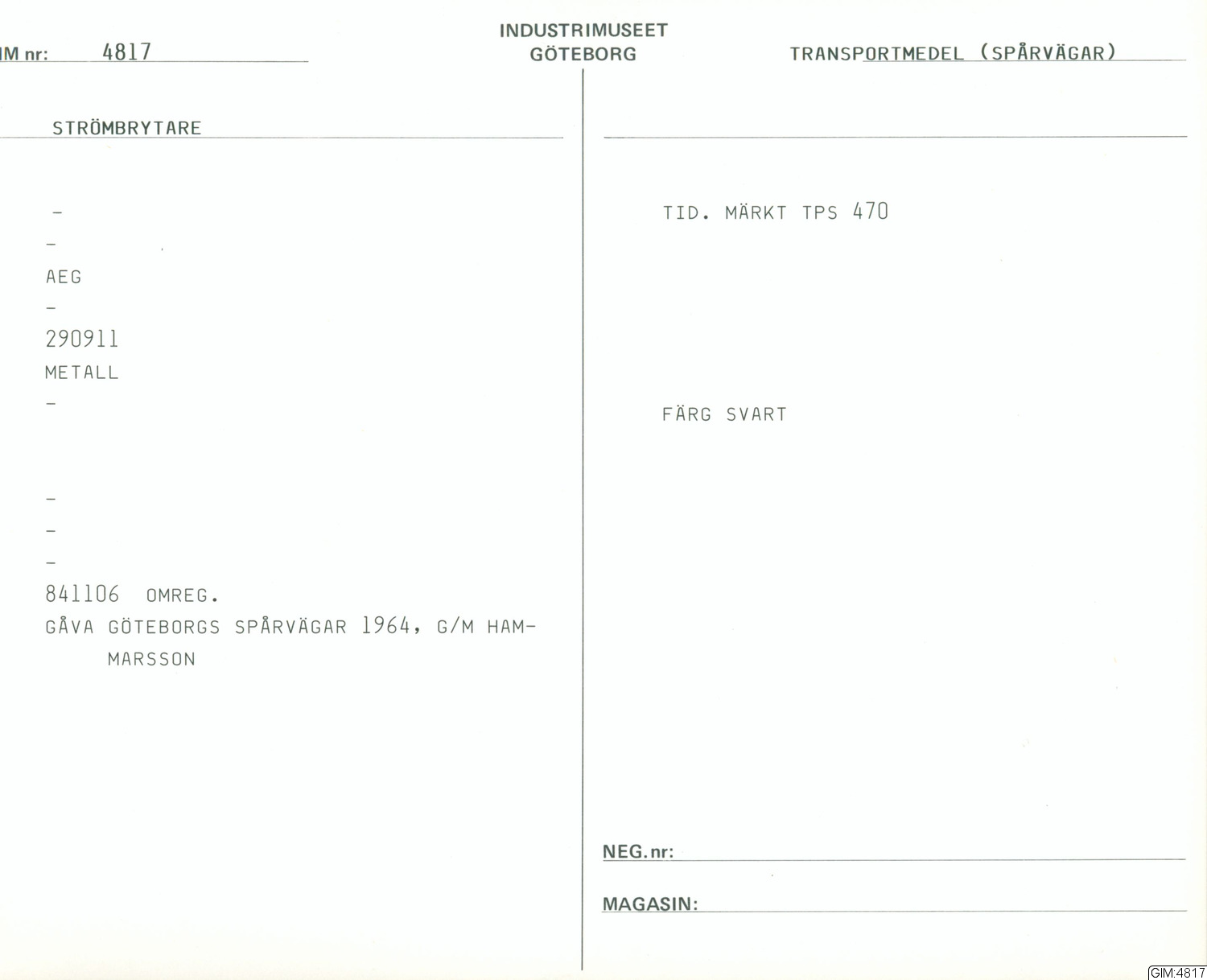 Gåva från Göteborgs Spårvägar genom Herr Hammarsson.