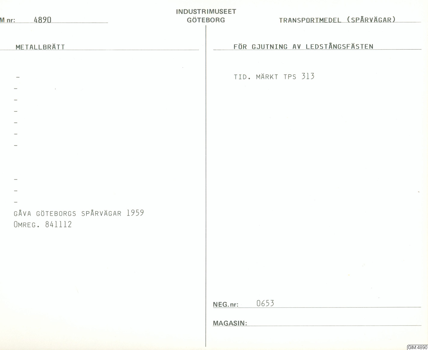 GIM katalogkort Transportmedel: Spårvägar 1