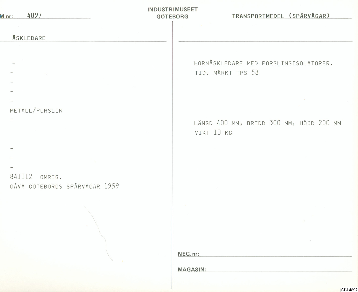 GIM katalogkort Transportmedel: Spårvägar 1