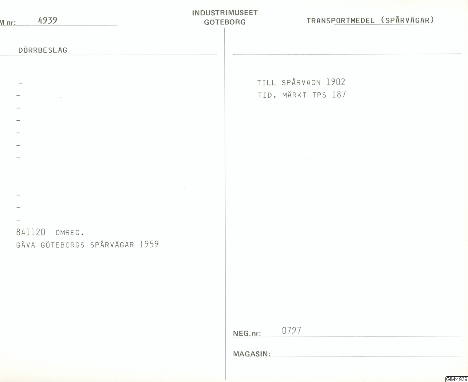 GIM katalogkort Transportmedel: Spårvägar 1