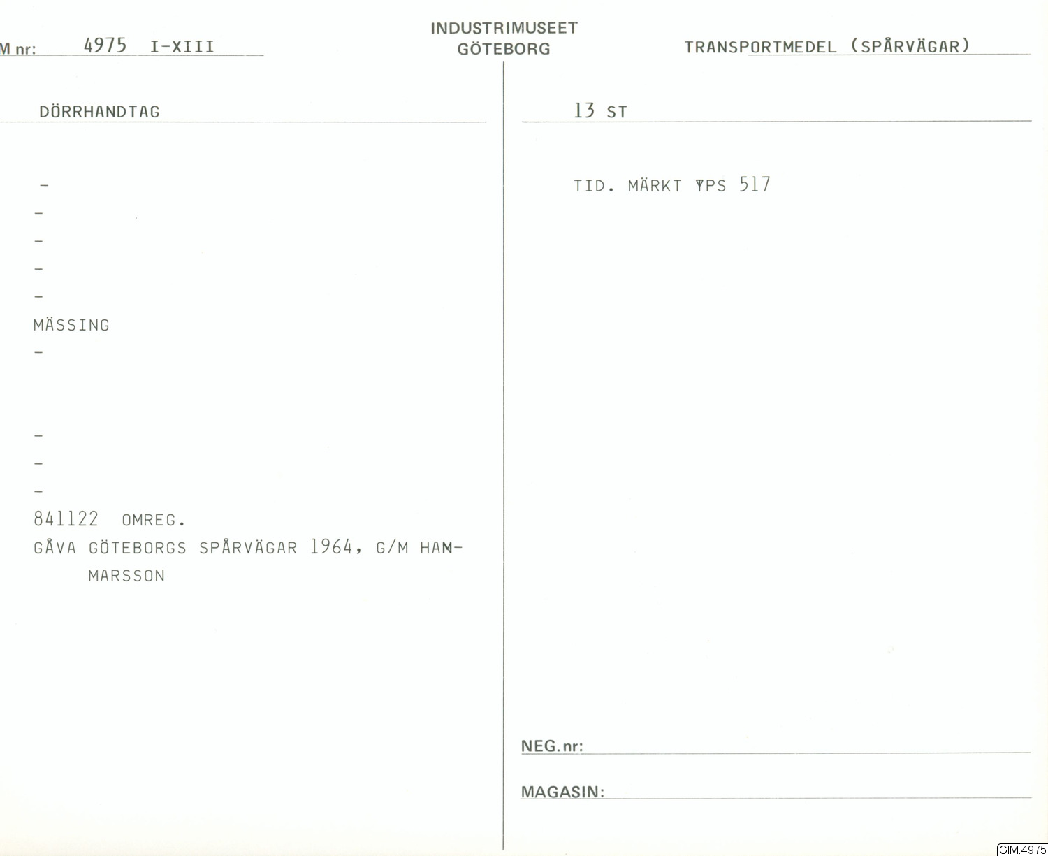 GIM katalogkort Transportmedel: Spårvägar 1