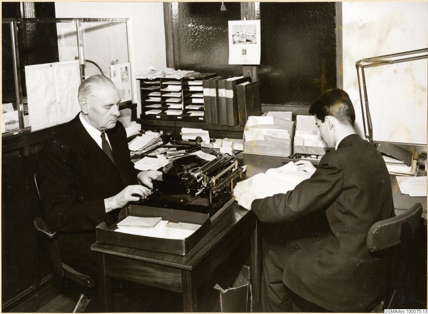 försäkringsbolag; telefon; man; skrivmaskin; vaktmästare
