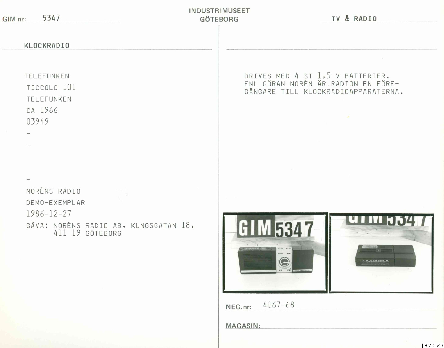 GIM katalogkort Radioteknik