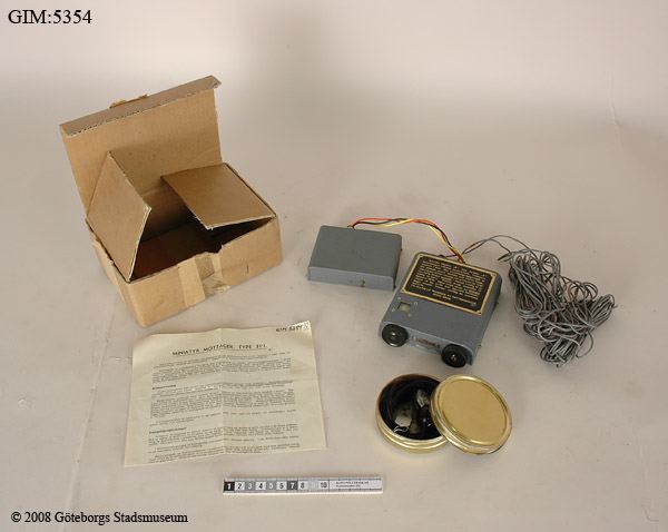 - Radio som tillverkades i England och som släpptes över det ockuperade Norge från brittiska flygplan så att norrmännen skulle kunna lyssna på nyheter från BBC. Förpackad i orginalkartongen. Gåva från wilhelm Jarnult 20 september 1987.