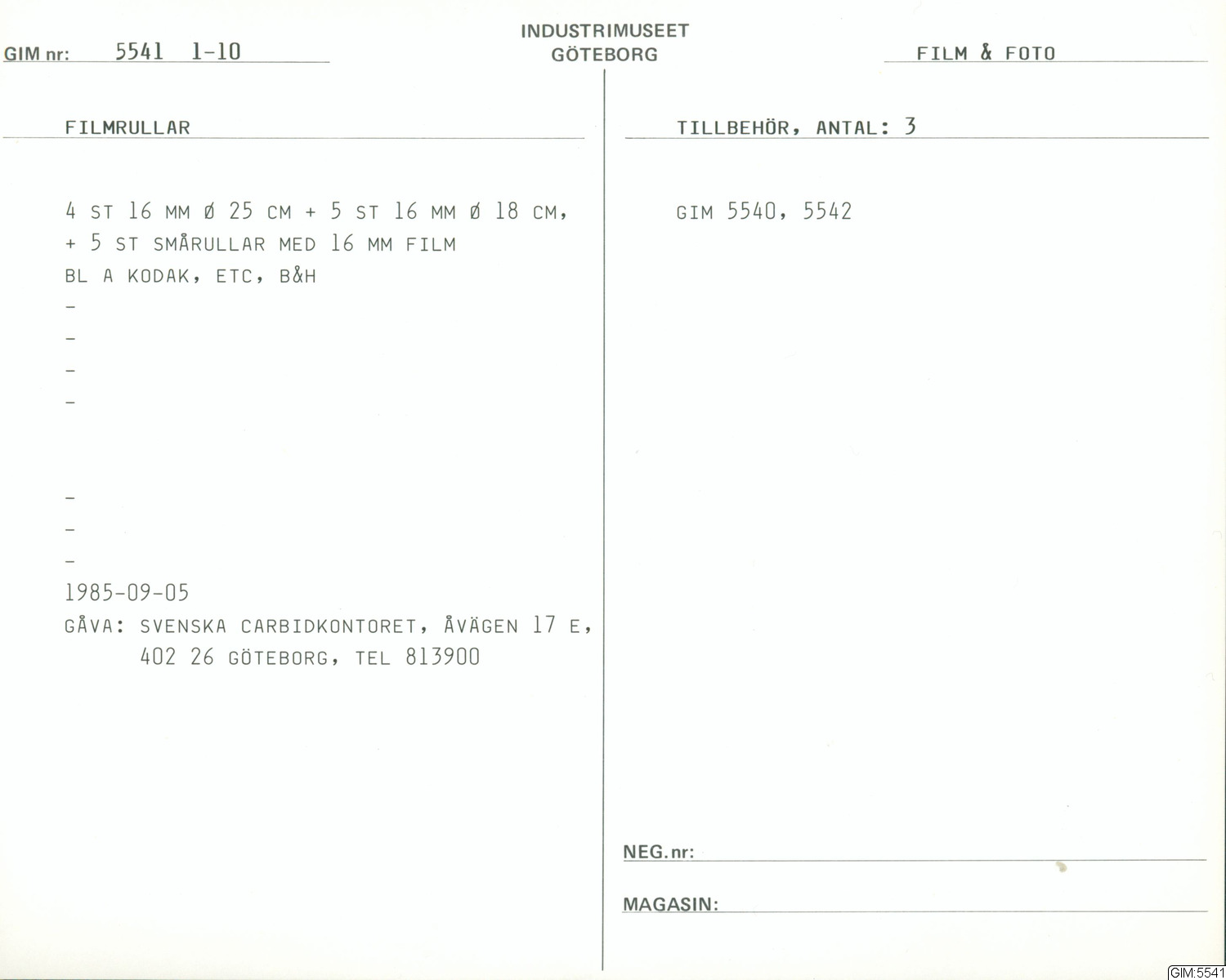 10 st filmrullar. 4 st 16 mm/25 cm + 5 st 16 mm/18 cm + 5 st smårullar med 16 mm film