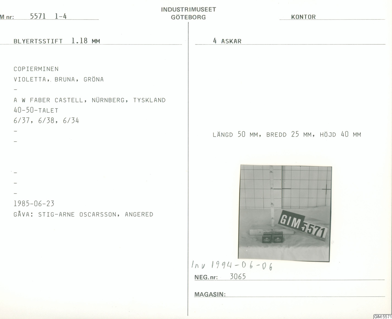 4 st askar med 1.18 mm blyertsstift av färgerna violett, brun ocg gröna.