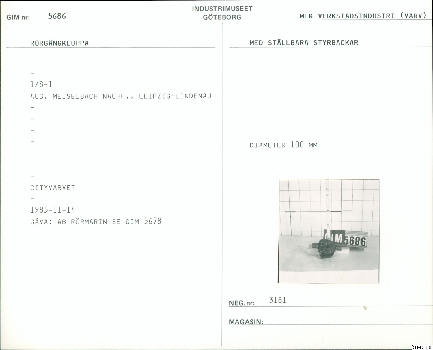 Har använts på Cityvarvet-verkstaden, Göteborg.#AB Rörmarin var ett dotterbolag till cityvarvet.