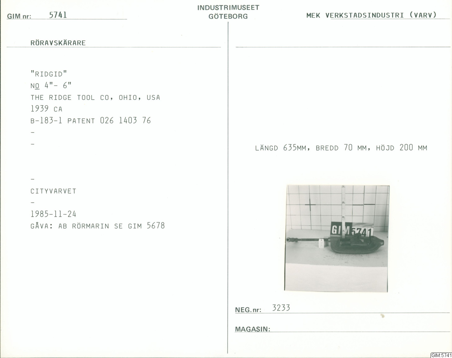 Har använts på Cityvarvet-verkstaden, Göteborg. AB Rörmarin var ett dotterbolag till Cityvarvet.