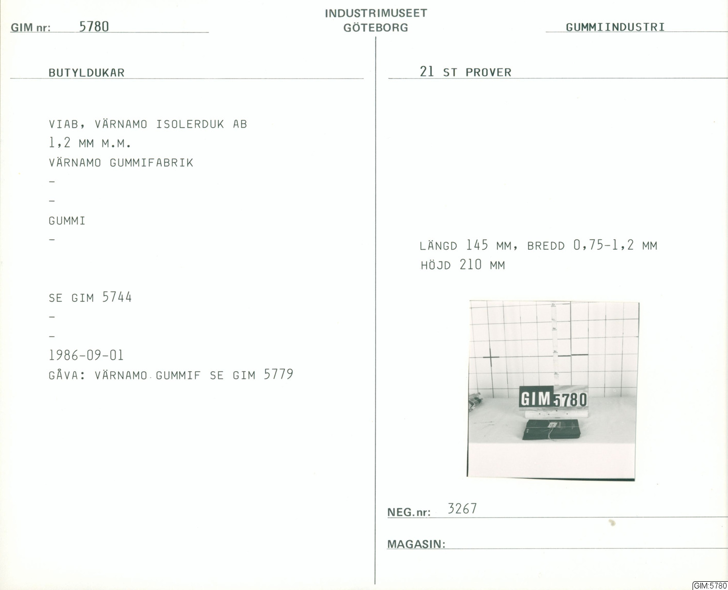 GIM katalogkort Gummi-industri, järnhantering