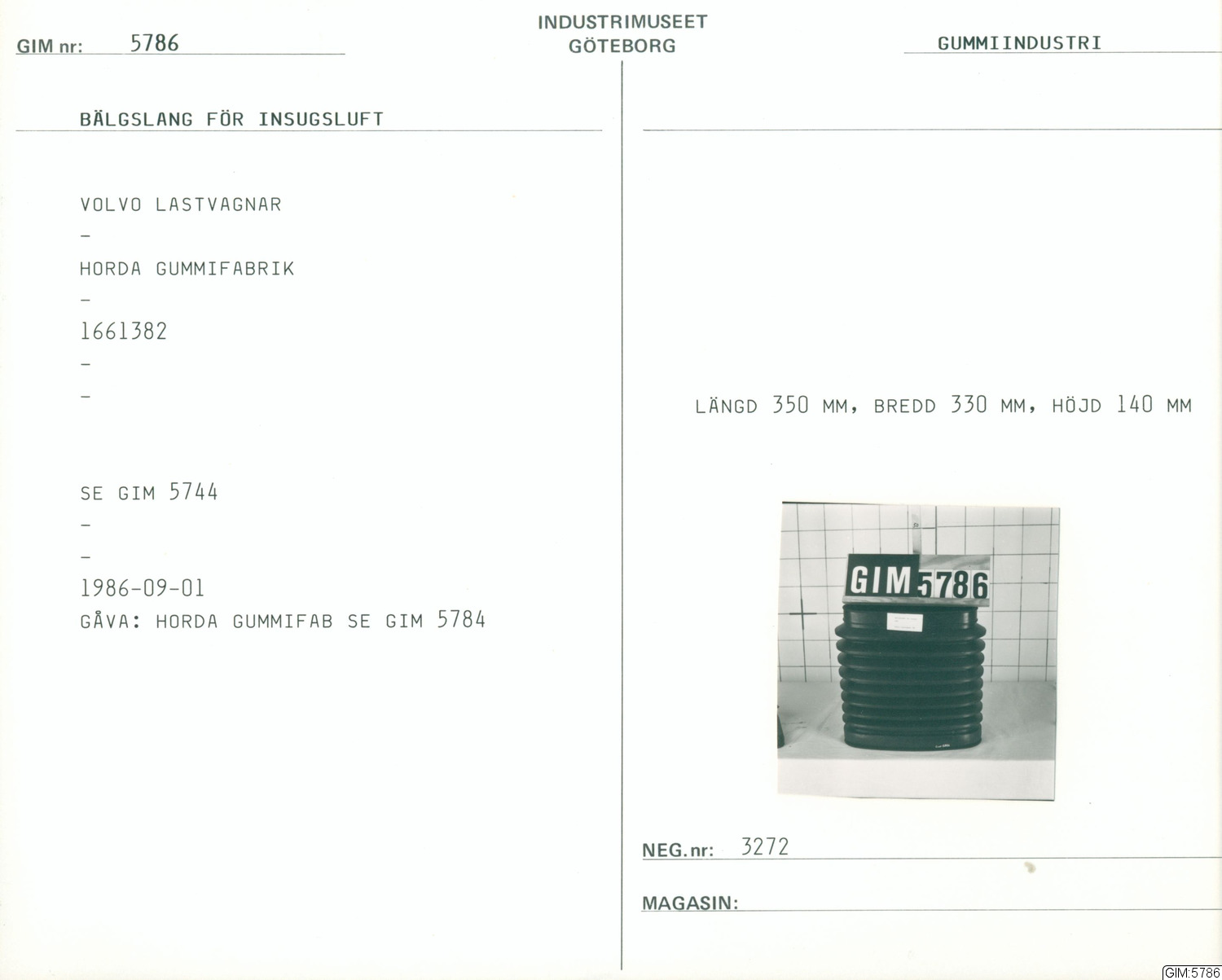GIM katalogkort Gummi-industri, järnhantering