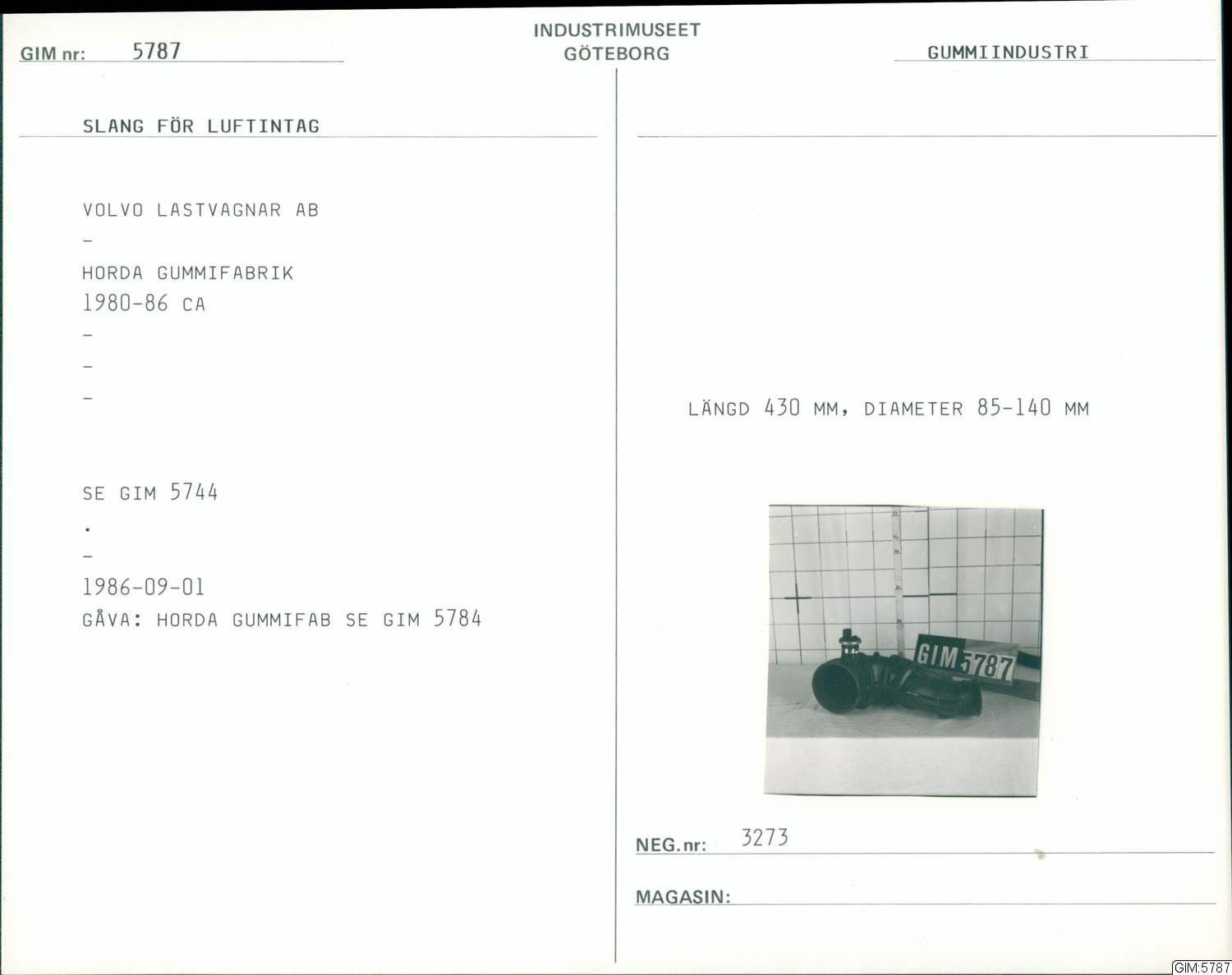 GIM katalogkort Gummi-industri, järnhantering