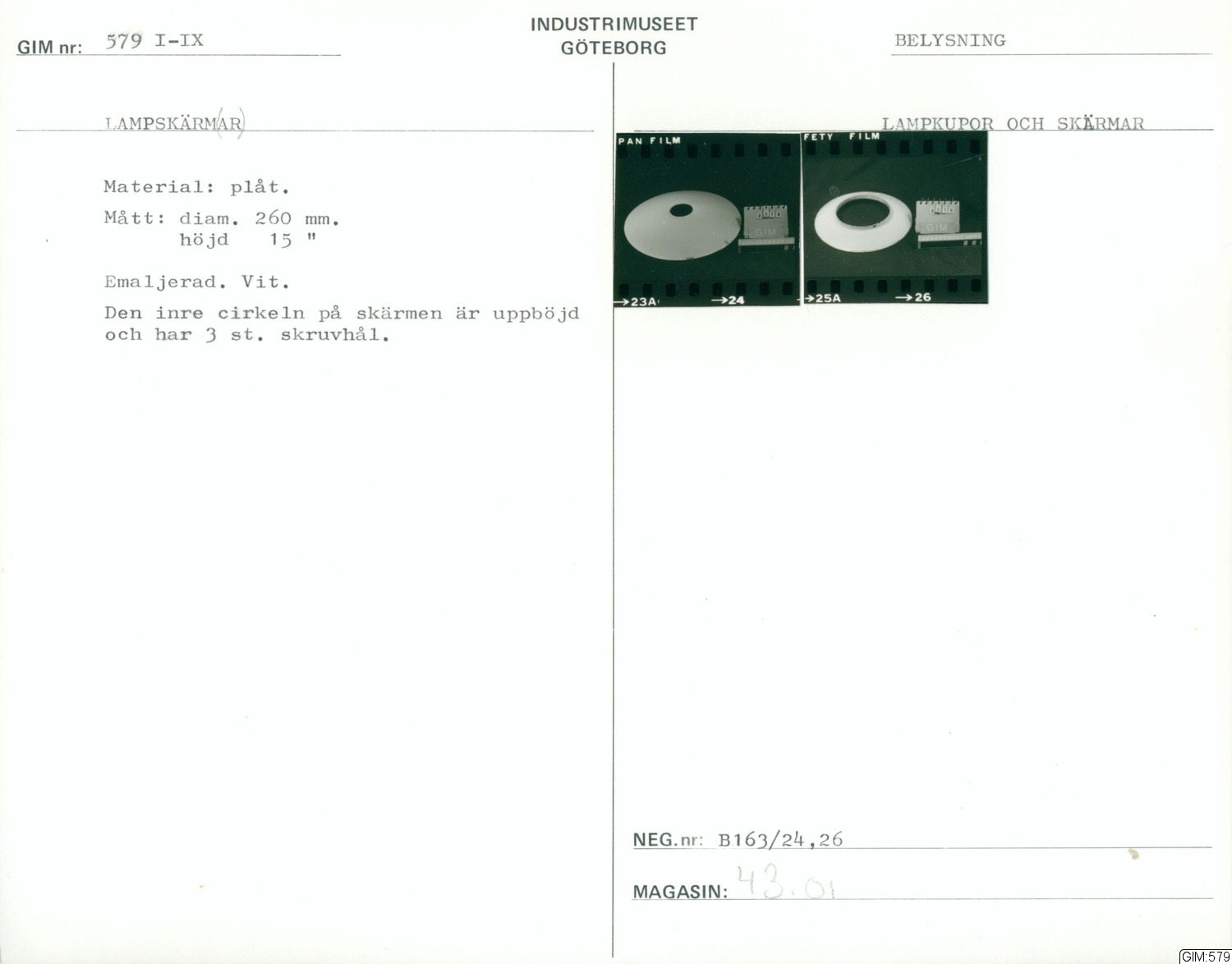 Emaljerade - vita; inre cirkeln på skärmen är upphöjd och har 3 skruvhål.