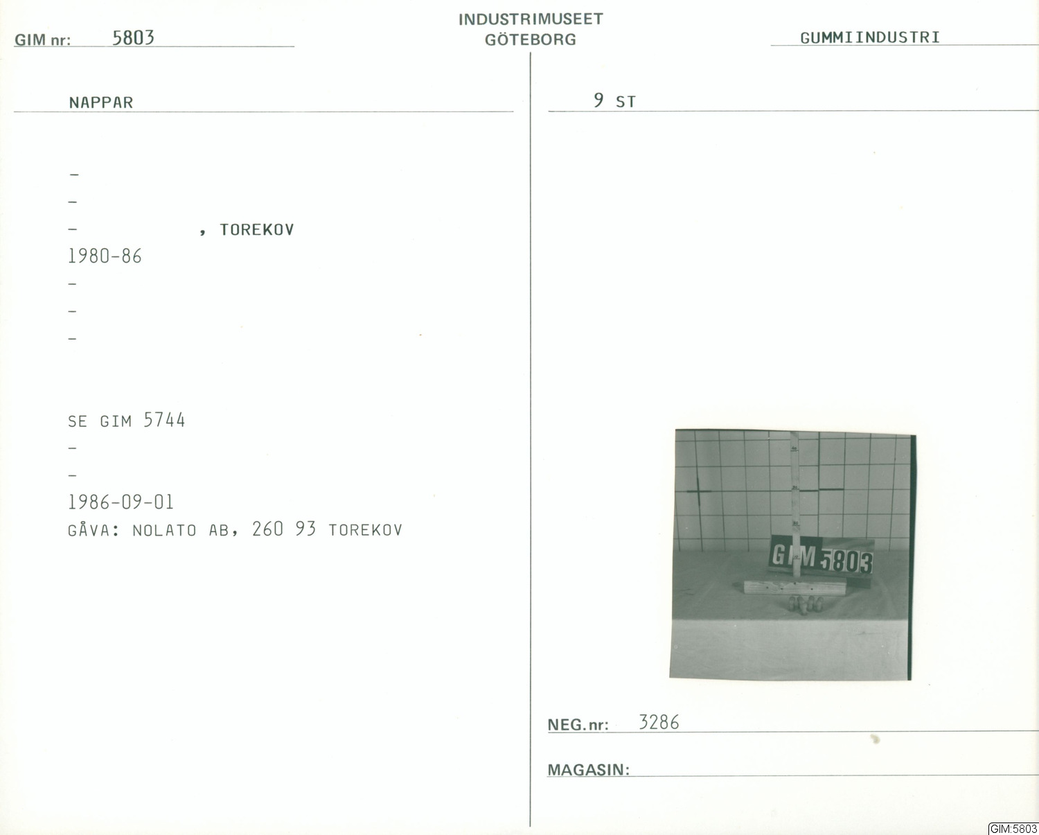 GIM katalogkort Gummi-industri, järnhantering