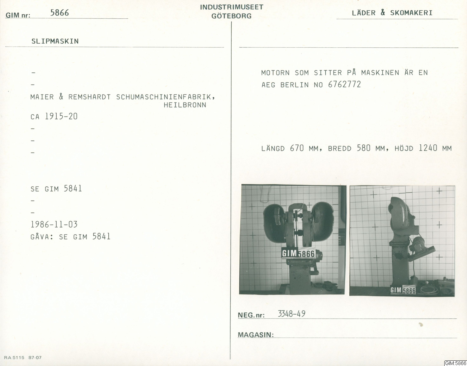 Motorn som sitter på maskinen är en AEG Berlin No 6762772