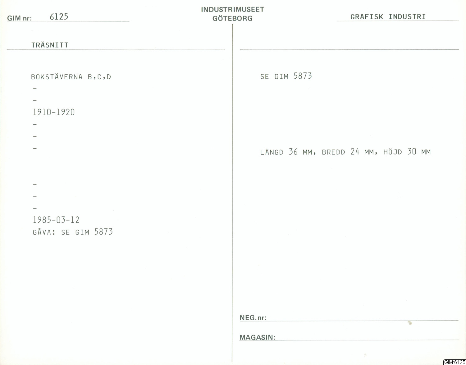 Träsnitt= xylografi. Bokstäverna: b, c, d (gemena)