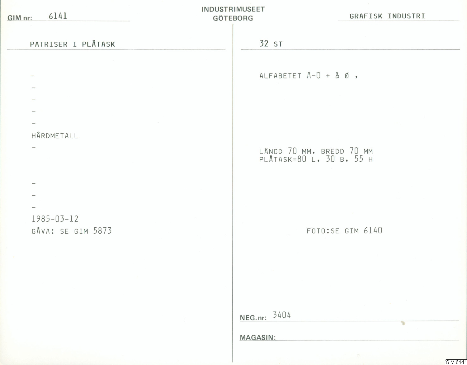 Patriser-alfabetet A-Ö + & . Förvaras i plåtask som är 8 L- 3 B- 5,5 H cm.