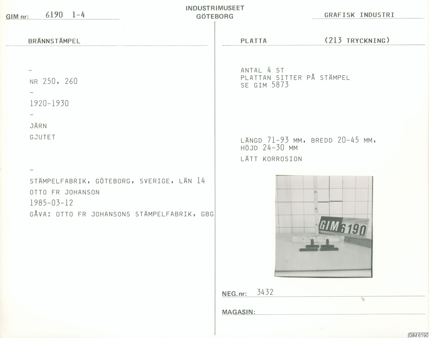Har använts på Otto Fr Johanssons Stämpelfabrik i Göteborg.