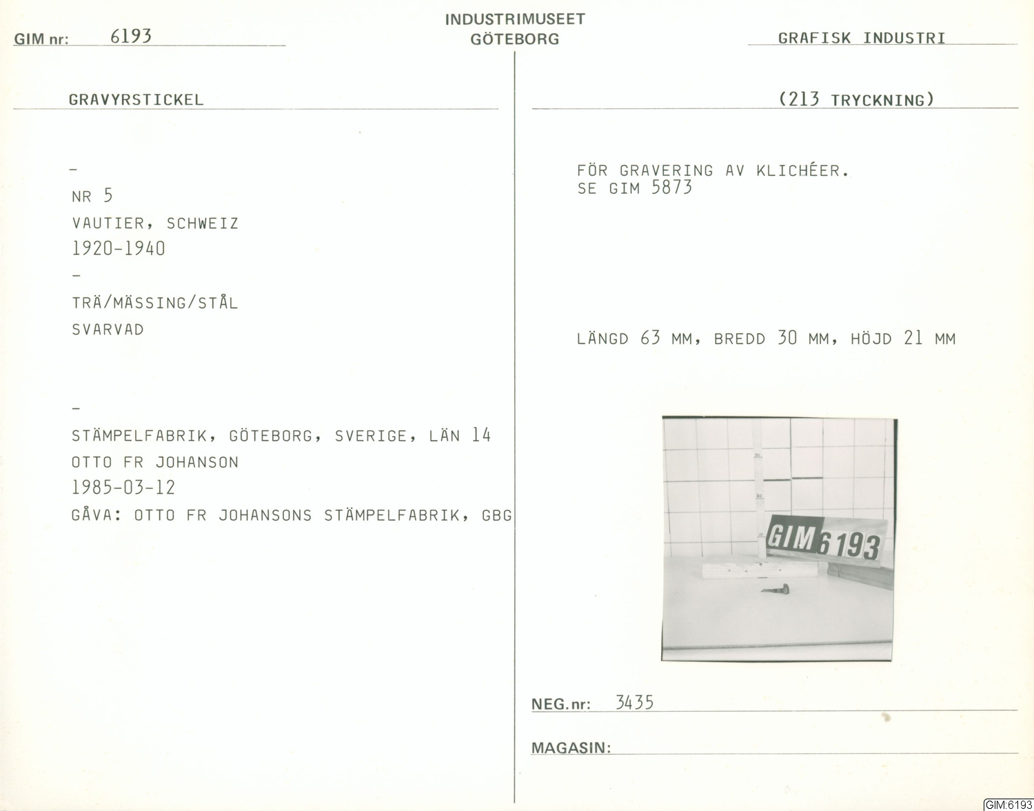 Svarvad gravyrstickel för gravering av klichékanter.