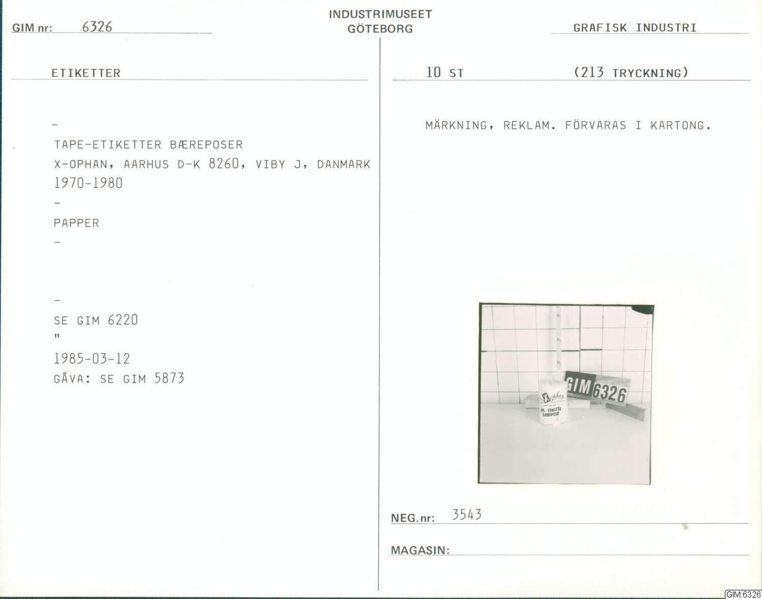 - Etiketter för märkning av reklam. Förvaras i kartong.