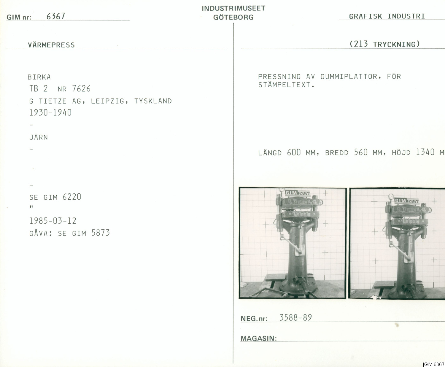 - Pressning av gummiplattor (?) för stämpeltext. 2st lösa metallskivor.