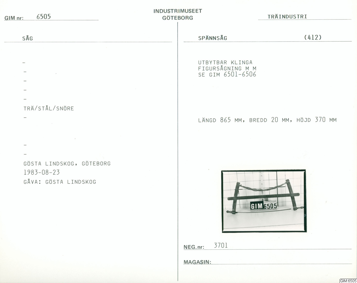 GIM:6505 :: såg, verktyg