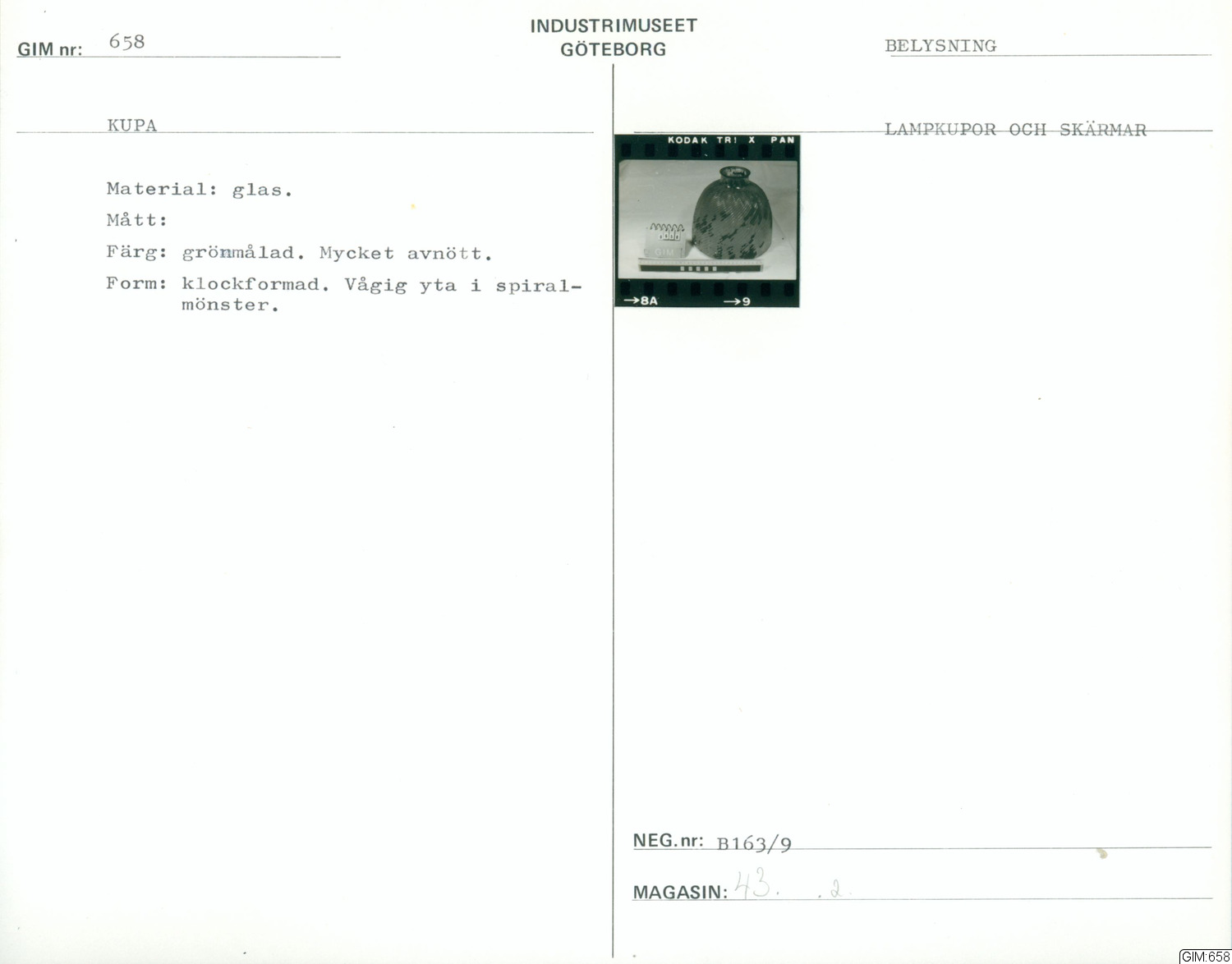 Målad, klock formad, vågig yta i spiralmönster grönmålad utsida.