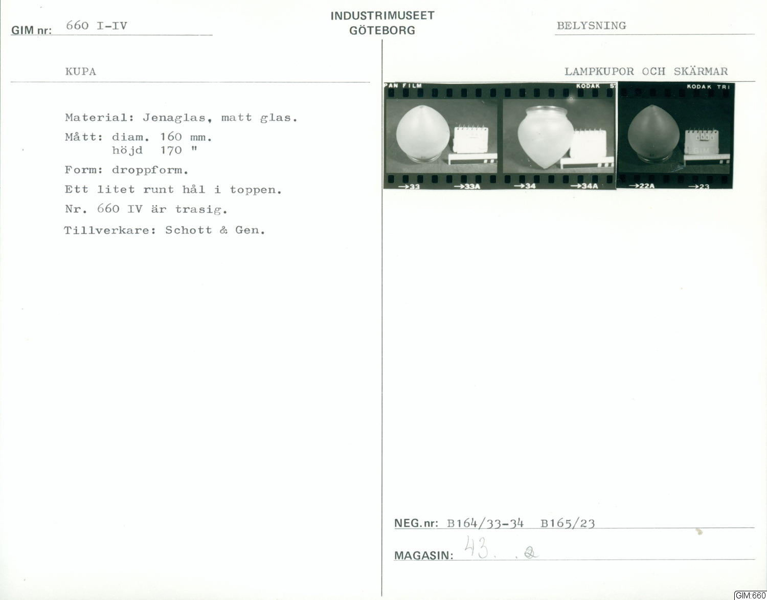 Droppformade matt glas ett runt hål i toppen nr 4 är trasig.