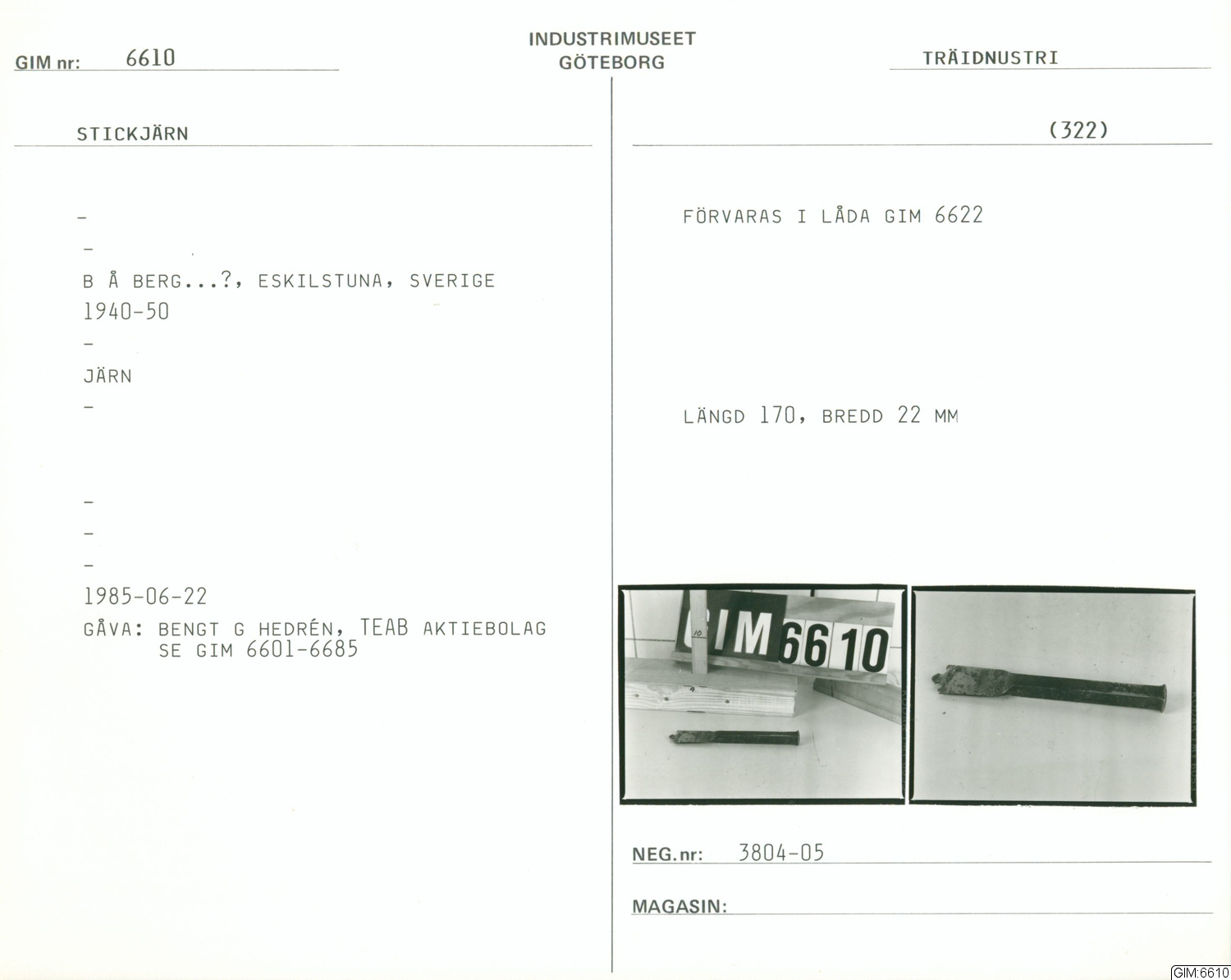 GIM 6584, 6603-6621(ej 6605, 6608, 6615, 6617, 6619) ligger i verktygslåda av trä som heter 6622