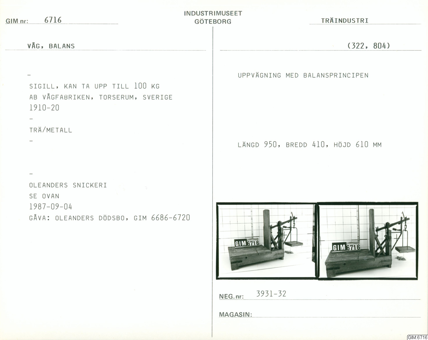 - För uppvägning med balans, sigill kan ta upp till 100 kg. Vikter saknas. Brunlaserad