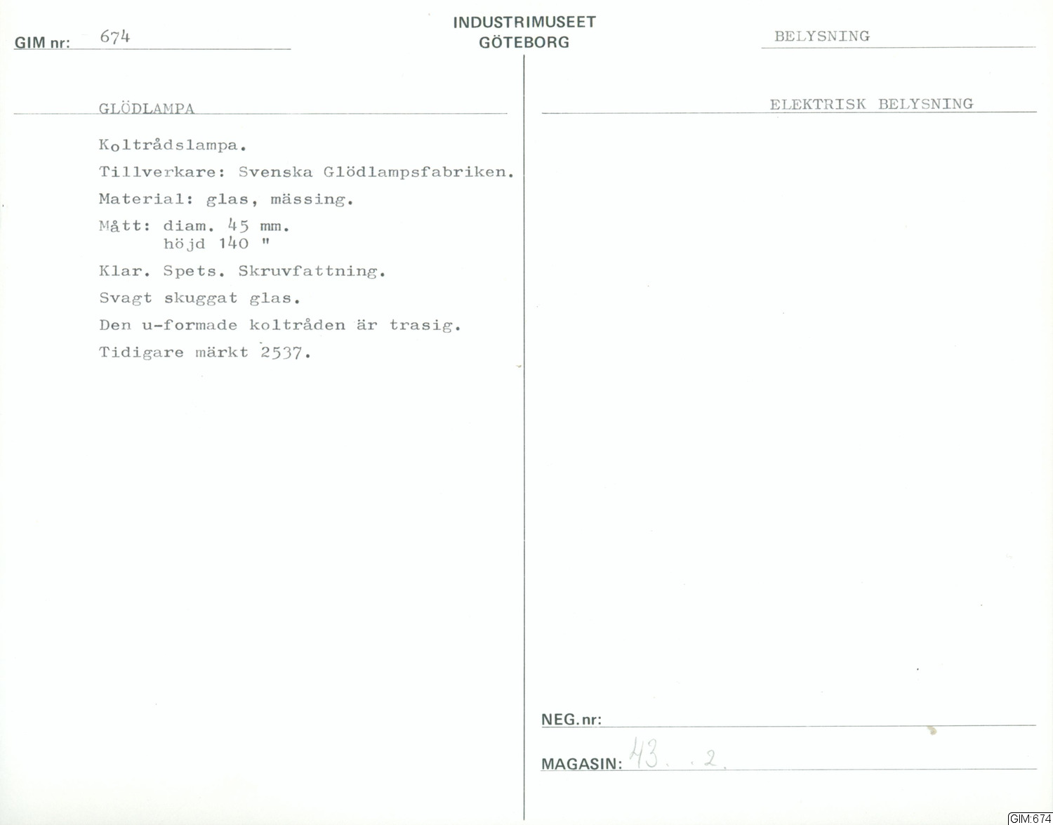GIM:674 :: koltrådslampa, lamptillbehör